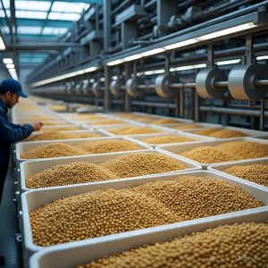 Soyabeans (Glycine max) are protein-rich leguminous seeds widely cultivated for their oil and high-protein meal. Nigeria is a leading producer of non-GMO soyabeans in Africa. The seeds are typically yellow, round to oval in shape, and contain up to 40% protein and 20% oil.